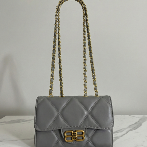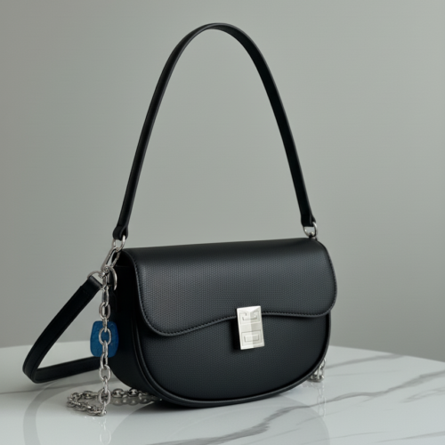 A classic flap shoulder bag designed with a beige plaid fabric body and smooth faux leather trim. The gold-tone front accent adds a refined touch, making this bag a versatile choice for everyday wear or smart-casual looks.